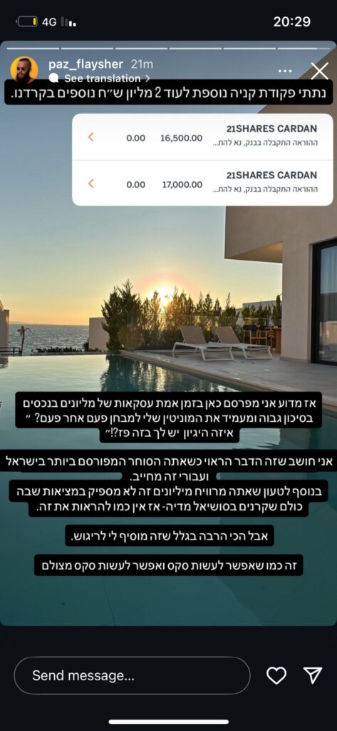 Paz bought about 4M NIS (over $1.2M) of this Crypto Coin: ADA